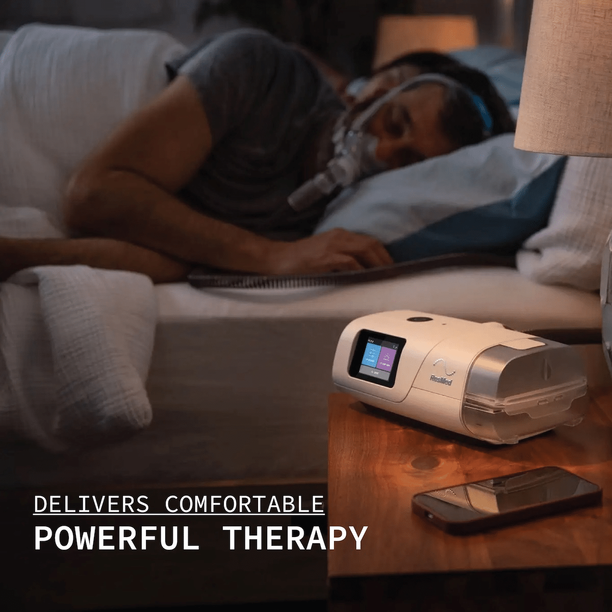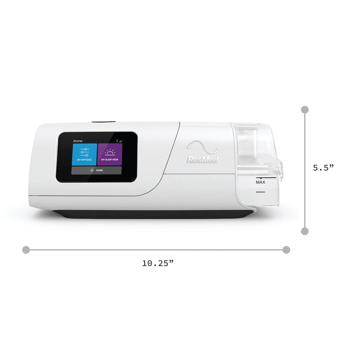 Touchscreen interface, sleek bedside look, and easy Start/Stop button.Integrated Humidification