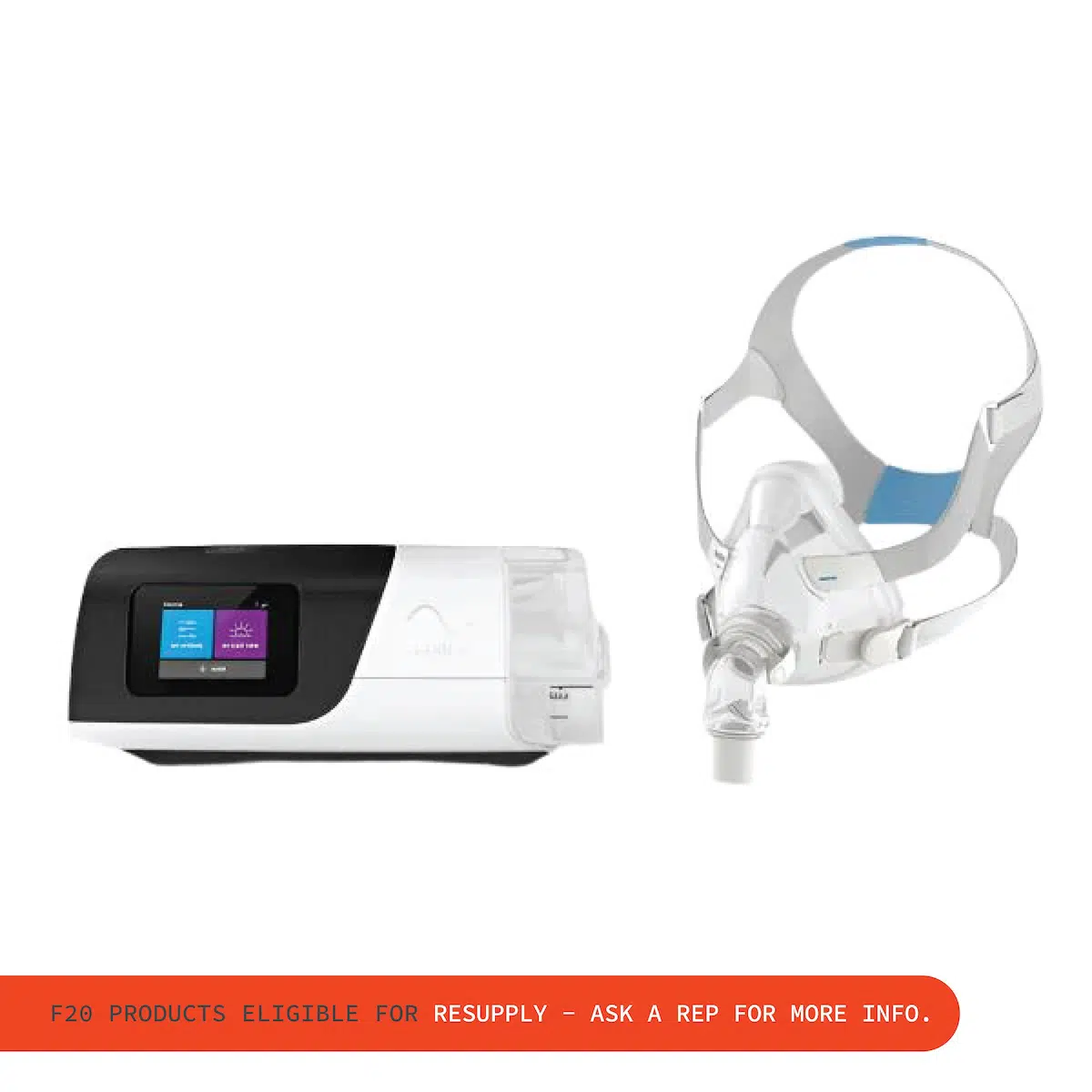 Request This ProductThe ResMed AirFit F20 delivers a secure fit, quiet performance, and lasting comfort for CPAP and BiPAP therapy. With ResMeds innovative InfinitySeal cushion, the mask adapts to your facial contours and therapy pressure to maintain a reliable seal all night. Patients can choose the complete AirFit F20 Full Face Mask (with headgear, frame, cushion, clips, and elbow) or the replacement InfinitySeal cushion to keep their mask performing like new.