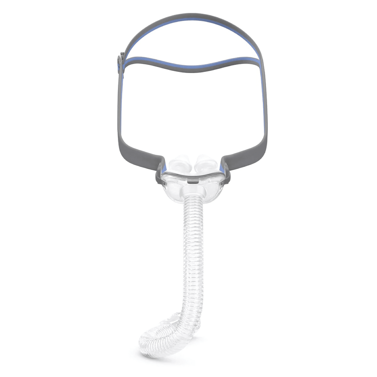 – Dual-wall nasal pillows with trampoline action for a gentle, stable seal