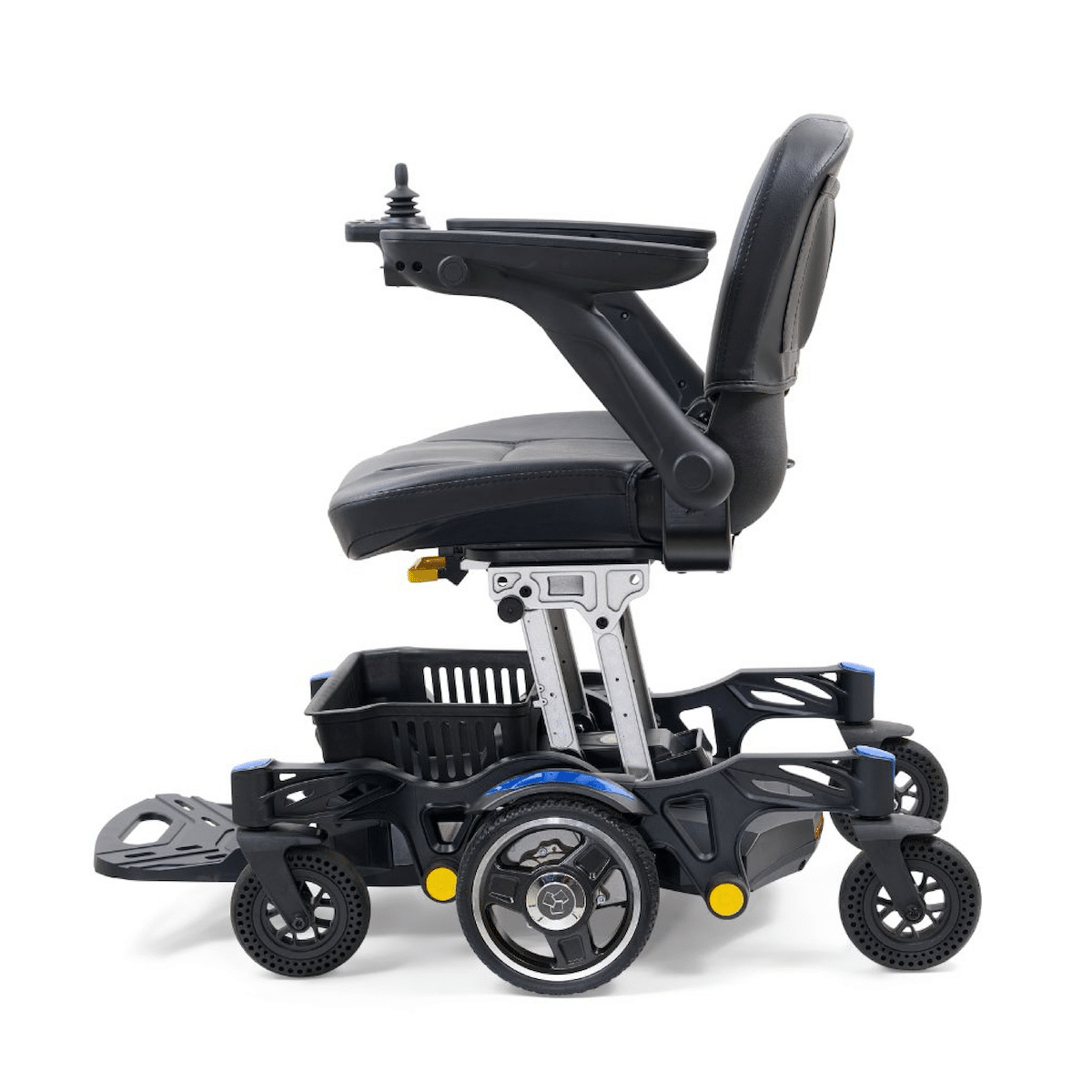 Folds to a slim 10 height for easy storage and transport. Heaviest piece weighs only 46 lbs. (without seat and batteries).Exceptional Maneuverability