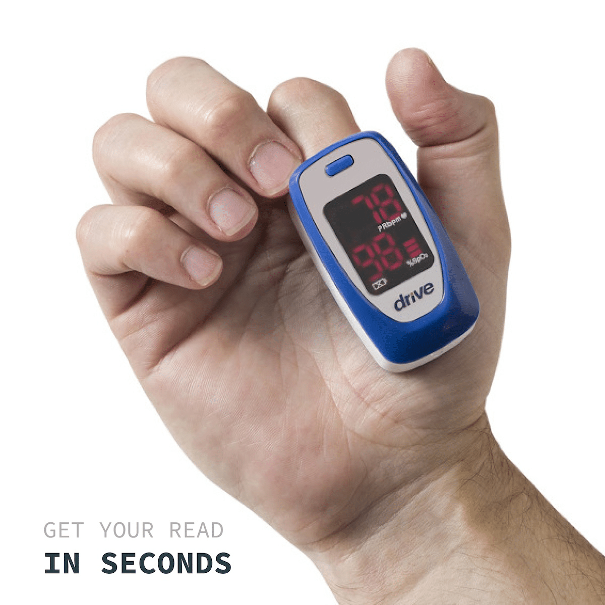 Request This ProductThe Drive Fingertip Pulse Oximeter provides quick, accurate readings of SpO₂ levels and pulse rate in a lightweight, portable design. Featuring a large, easy-to-read LED display with multi-view capability, it accommodates a wide range of finger sizes from pediatric to adult. With up to 30 hours of battery life, an auto-off function, and included lanyard and batteries, it’s perfect for home monitoring or active lifestyles.