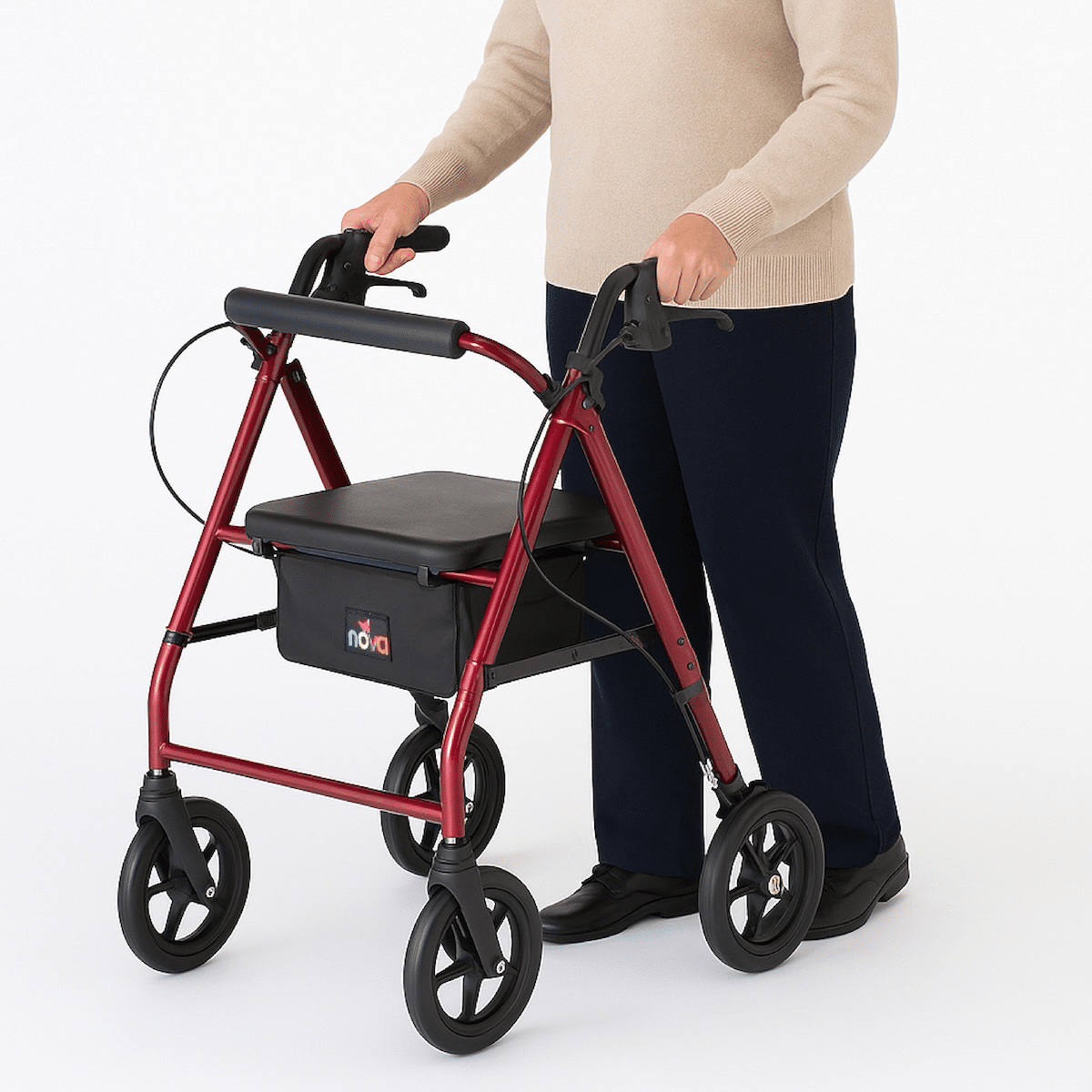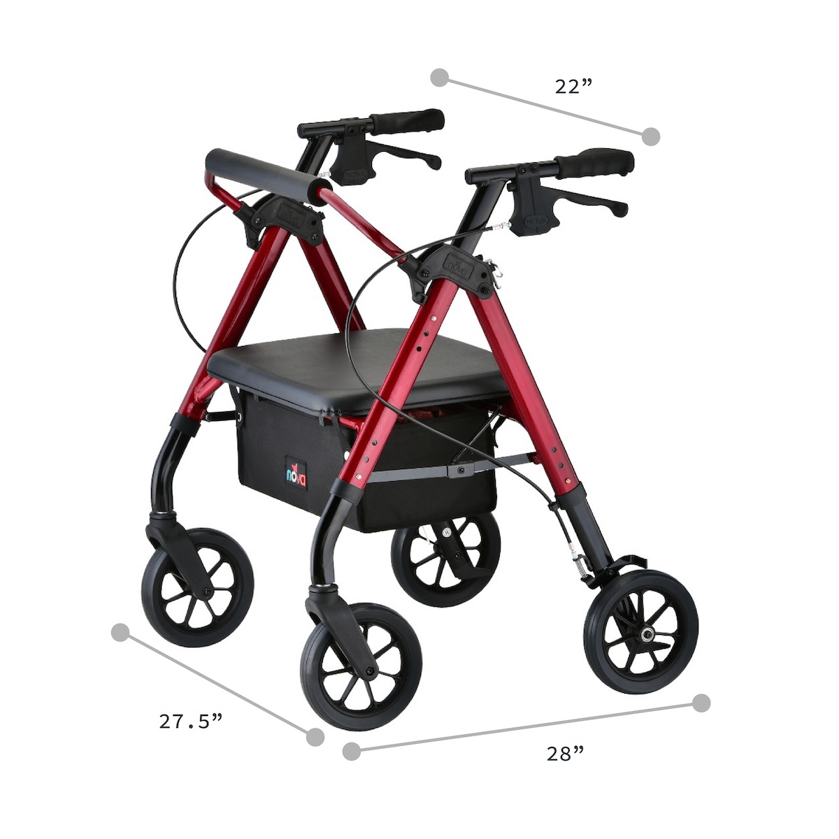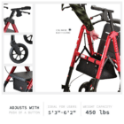 Request This ProductThe NOVA STAR HD Rollator combines strength, comfort, and convenience for users needing extra support. With a 450 lb weight capacity and a wider, padded seat, it’s built for comfort and durability. The Quick-Fit push buttons make handle and leg adjustments easy, ensuring a custom fit for users from 4’11” to 6’2”. Featuring all-terrain 8” wheels, patented locking hand brakes, and a fold-and-go design with a Lock & Lift pin, the STAR HD is perfect for both indoor and outdoor mobility.