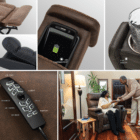 Ergonomically designed toggle remote with two programmable memory positions, USB charging port, and independent controls for lumbar and headrest.